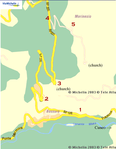 Michelin directions take you from Cuneo on the main road for the