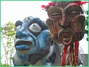 In summer of 2003 we were invited to Omega Institute, a holistic studies center in Rhinebeck, NY, to conduct a workshop in pageant puppetry. 21 participants collaborated to design, create, and perform Ananse the Spider, a trickster figure from West African myhology. According to African folklore, Ananse tricked the Sky God into giving up his sotries so that mankind could partake in the divine gift of storytelling. In tribute to his gift, we designed Ananse with a mask at the end of each of his legs, thus making the puppet himself a puppeteer, telling a tales within a tale.