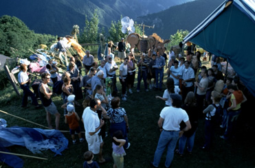 DEVELOP A SITE-SPECIFIC COMMUNITY PAGEANT: We will come to your community as artists-in-residence and work with local residents, schools, or arts organizations to create a pageant that uniquely reflects aspects of your local culture, history, or environment. We work collaboratively at every stage of the process, beginning with community interviews and brainstorming sessions, then designing and building through group Puppetraisings, and ultimately involving hundreds of volunteers to perform the final procession. These site-specific workshops offer an opportunity for an entire community to contemplate its own local identity, with discussions framed and focused by tangible artistic goal as the outcome. At the same time, the workshops allow us to share technical and organizational insights necessary to sustain an annual procession for years to come. Depending on funding and the scale of a proposed event, these workshops range in duration from weekend workshops to month-long intensive residencies. Every community is different, so we invite contact us to discuss potential projects in greater detail. |