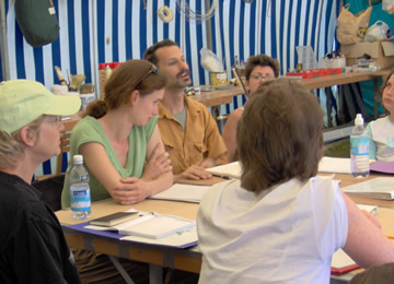ARTIST TALKS, DISCUSSIONS, and CONSULTATIONS : We are always eager to share our work and our thoughts on processional art with interested schools or other organizations. We tailor our lectures and discussions to accommodate specific groups, age levels, academic fields, or specialized topics. Our recent lectures have included the University of Michigan (College of Art and Design, and School of Urban Planning and Regional Development), Binghamton High School (Arts Division), University of the West Indies (Trinidad campus for Carnival Arts), Maine College of Art, and the Puppetry Guild of Greater New York. We also provide consulatation for events, working with organizers to develop new approaches to community arts, volunteer coordination, procession "flow" and timing, crowd management, and other issues associated with creating and sustaining a community pageant. Contact us to arrange a lecture/discussion or a consultation. |